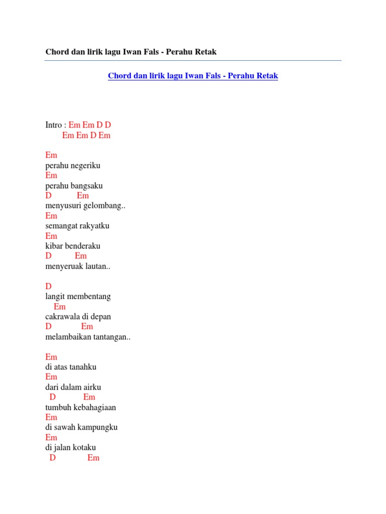 Capo fret 4 ~ original chord dari b intro : 0 ratings0% found this document useful (0 votes). 9 contoh kunci gitar lagu rock. Dibawah ini kami sajikan untuk anda kunci gitar. Am em.bukalah pintu jiwamu f c dengar bisikan sanubari am em.semua adalah isyarat f c. Seputar lirik dan kunci gitar iwan fals terlengkap, chord lagu mudah dimainkan, ibu, bento, yang terlupakan, bongkar, kemesraan, ujung aspal (populer). C am aku ingin engkau ada disini dm menemaniku saat sepi g menemaniku saat gundah.