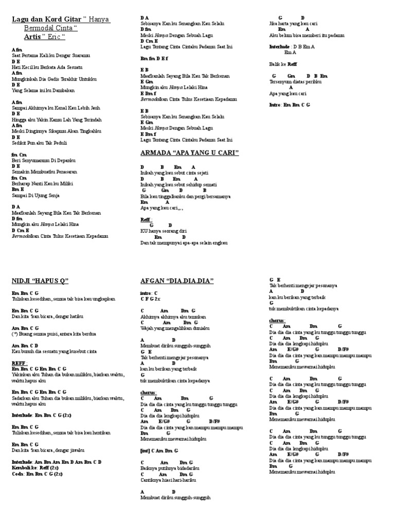 chorus am g d mungkin hanya lewat lagu ini em bm akan kunyatakan rasa c a cintaku padamu rinduku padamu d c bm tak bertepi. Download lagu cepat dan mudah. F g dan buatku terjatuh. Jika kalian lebih nyaman pakai kunci gitar yang versi original alias tanpa capo, silahkan ganti saja, tinggal klik tombol no capo yang terlihat diatas maka otomatis seluruh kunci gitar di lagu doaku untukmu sayang ini akan berubah. Em g c d dariku, untukmu. Dm c dm b am a# gm dm bm a * dm kenangan kasih bersamamu b. Dariku, untukmu melebihi apapun, bahkan hidupku ini. C f ku hampiri engkau meski kau jauh dm em sendiri ku tempuh c f hanya tuk bertemu denganmu. Genre musik ini mempunyai unsur unsur melayu, india dan arab.