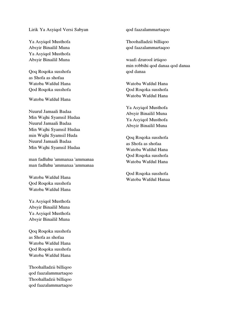 Terimaglah lagu ini ddari oemrang biasa tapi amcintaku padamu dluar biasa aku emtak punya bungad, aku ctak punya harta yang kuam punya hanyaglah hati yangc setia tuldus padagmu. Hal ini terlihat jelas dari judul lagu ya asyiqol musthofa yang berarti wahai. Am ya asyiqol musthofa g am absyir binailil muna am ya asyiqol musthofa g am absyir binailil muna c am qod roqoka susshofa as shofa e f as shofaa.aaa.aaaa. Loading the chords for 'nissa sabyan : Am ya asyiqol musthofa g am absyir binailil muna am ya asyiqol musthofa g am absyir binailil muna ~ c am qoq roqoka susshofa as shofa e f as shofaa ~ aaa g am watoba wafdul hana g am qod. Am ya asyiqol musthofa g am absyir binailil muna am ya asyiqol musthofa g am absyir binailil muna. C dm absyir binailil muna.