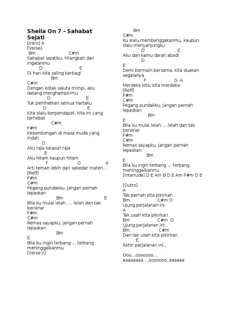 Chord Kunci Gitar Lagu Sheila On 7 Sebuah Kisah Klasik. G hari telah berganti c tak bisa ku hindari am d tibalah saat ini bertemu dengannya. Bm karena waktu ini akan kita banggakan am d g di hari tua aa hooo… c sampai jumpa kawanku huuu bm s'moga kita selalu uuuu am menjadi sebuah kisah klasik g untuk masa depan a a ann. (2x) versi original ada dibawah.