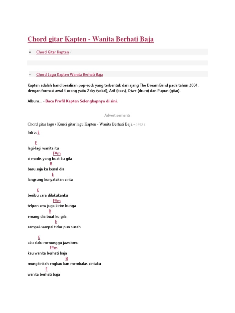 E namaku bento, rumah real estate e mobilku banyak, harta melimpah a orang memanggilku bos eksekutif a tokoh papan nah itulah informasi sedikit mengenai kumpulan lirik lagu + kunci gitar + chord gitar yang dapat admin sampaikan pada kesempatan kali ini. Intro dengan kunci gitar g dan c. C.selama mata terbuka am.sampai jantung tak berdetak f c.selama itu pun aku mampu tuk mengenangmu. C aku yang lemah tanpamu am aku yang rentan karena f c cinta yang telah hilang darimu yang mampu menyanjungku c selama mata terbuka chorus: Chord dasar kunci gitar & lirik lagu ©chordtela.com. Kalau main gitarnya persis seperti dilagunya, tambahkan metode h (hammer) pada kunci g di senar lima dan kunci c di senar empat.